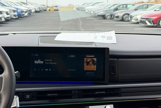 - Radio: AM/FM/HD Bose Premium Audio System -inc: 12 speakers including subwoofer, external amplifier, 12.3" wide touchscreen, Apple CarPlay and Android Auto, Bluetooth® hands-free w/wireless audio streaming, dynamic voice recognition, USB connectivity, SiriusXM, Blue Link+ connected car system, over-the-air updating capability, navigation system including traffic flow w/incident data via HD Radio (HERE) and rear seat quiet mode