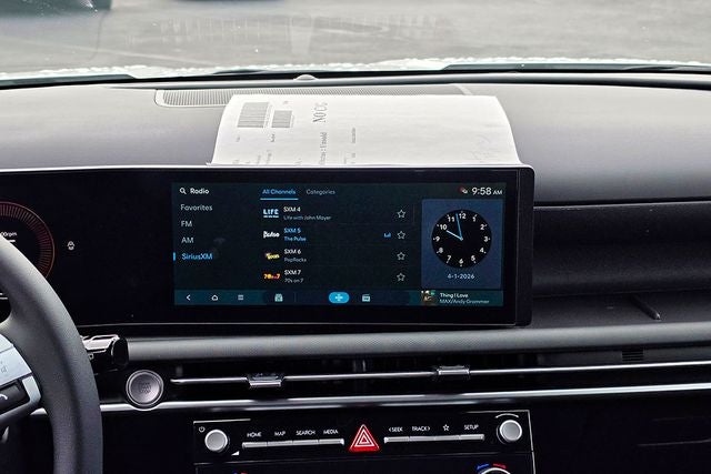 - Radio: AM/FM/HD Audio System -inc: 12.3" color touchscreen display, 6 speakers, SiriusXM satellite radio system (3-month trial subscription), wireless Apple CarPlay and Android Auto integration, controller OTA update capability, Blue Link connected car system and USB connectivity
